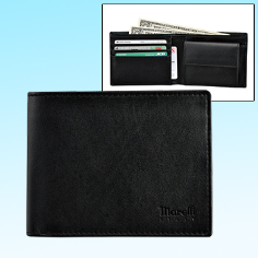 ベーシックで飽きの来ないアイテムです。シンプルで上質感があるのでどのシーンでもお使い頂けます。 札入れ2室 カード入れ3室 ポケット3室 ホック式小銭入れ1室 (本体:90×112×28mm) (材:表/牛革 内/合皮)