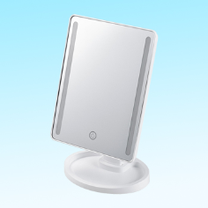 LED内蔵のスクエア型ミラー。くるっと回転して縦・横の切り替えができ、見やすく位置調整もできてメイクもバッチリ。 (本体:119×169×268mm) USBコード ×各1 (別売)単3形 ×4